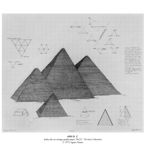 The Pyramids weave in and out of my work from the very beginning in diverse forms dealing with a great variety of issues important to humanity. Each form and concept represents an enigma, something to which we must respond. These forms are visual philosophy that convey ecological, social and cultural issues in a multitude of shapes. Every pyramid and every form seeks a purpose, poses a question and seeks an answer for humanity. They all deal with the present and the future.