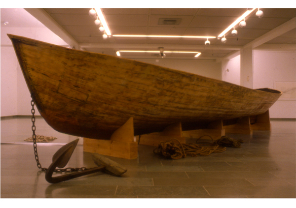 45 foot wooden barge filled with earth; soundtrack of heatrbeat and refrigerator unit; oars;